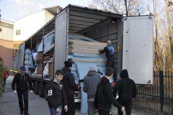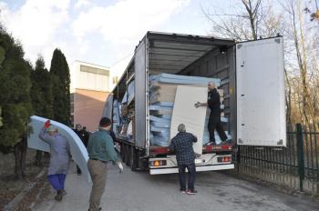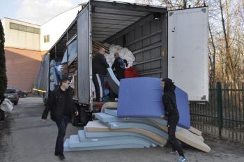 Stelaż do łóżka, materac, kołdra lub koc i poduszka – sto kilkadziesiąt takich zestawów trafiło wczoraj do magazynów w Rajsku z Freiburga.