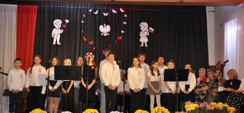 „Porębianie” zachwycili zgromadzonych pięknie przygotowanym programem artystycznym w którym pieśni patriotyczne przeplatały się z wątkami historycznymi. Najlepszym komentarzem do scenicznych prezentacji były długie i rzęsiste brawa po każdym z utworów.
