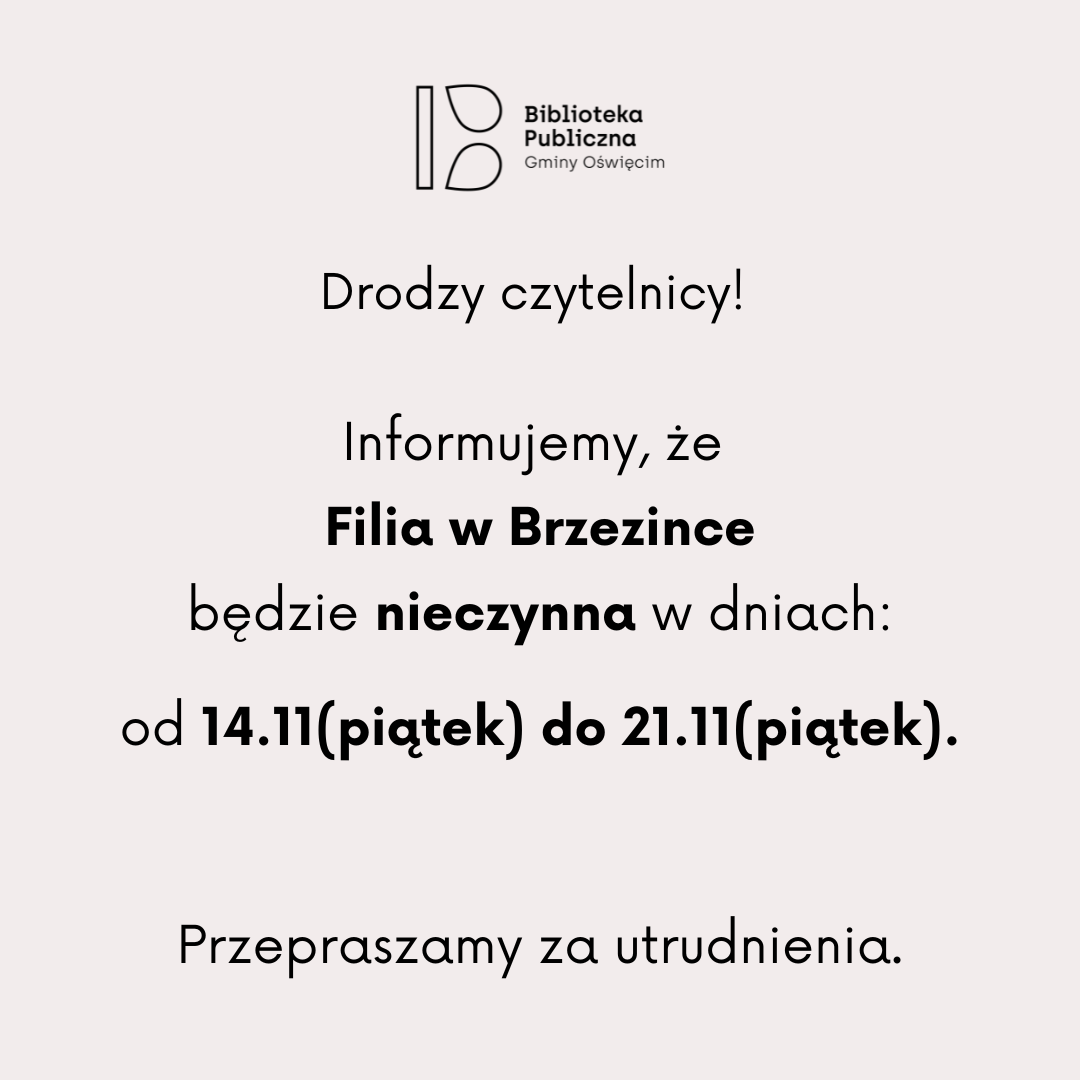 Informujemy, że Filia w Brzezince będzie nieczynna w następujących dniach:
