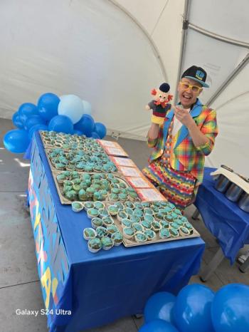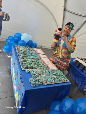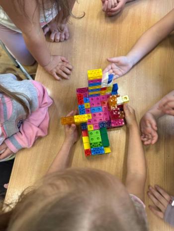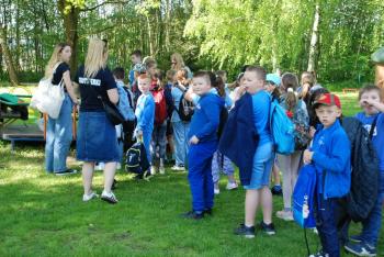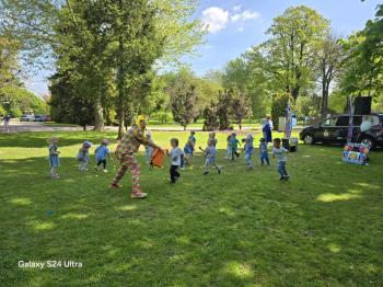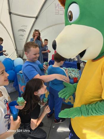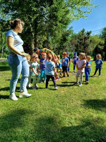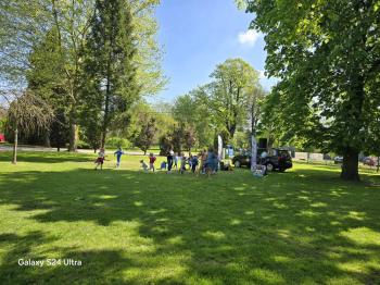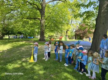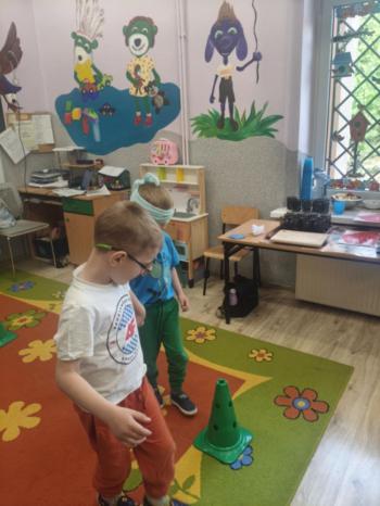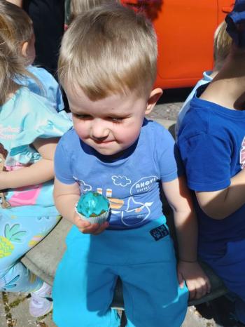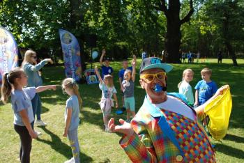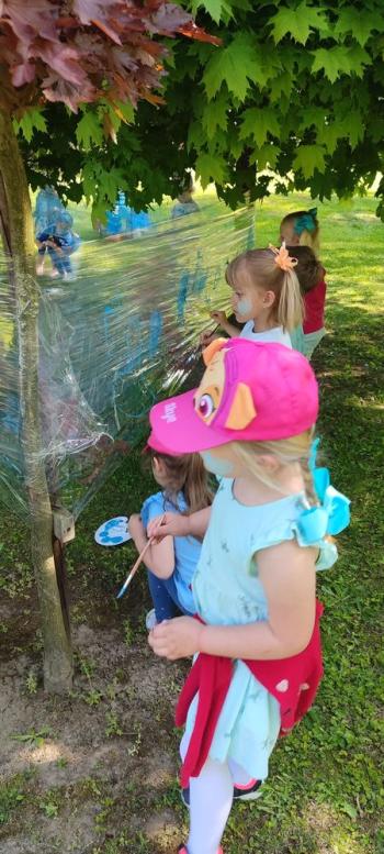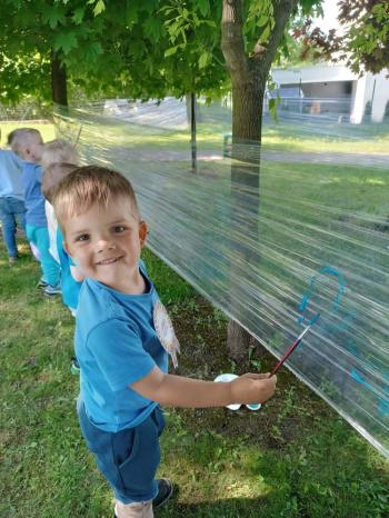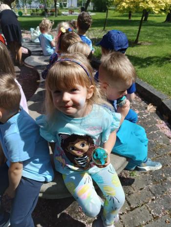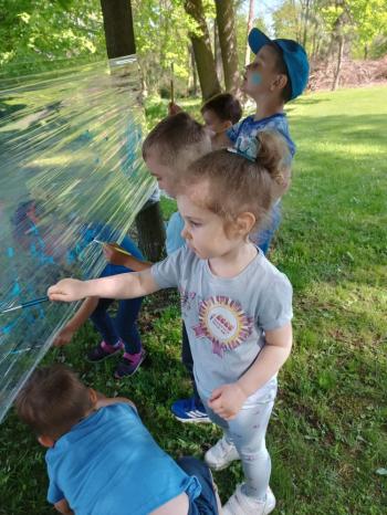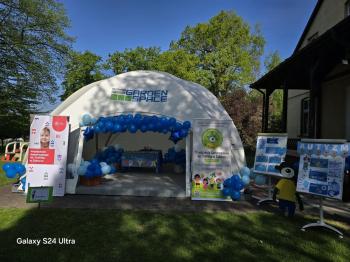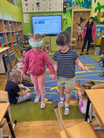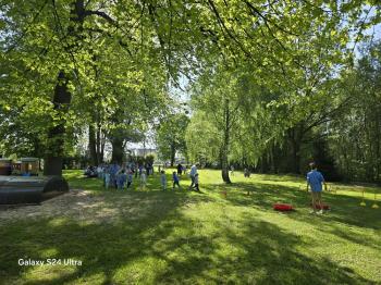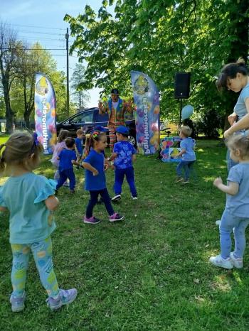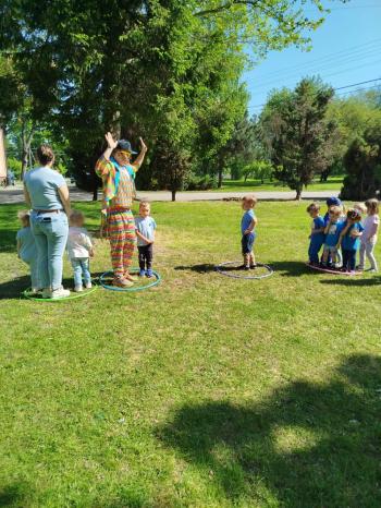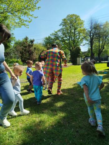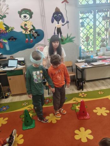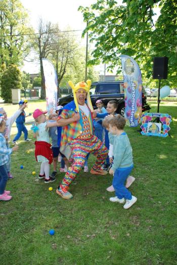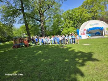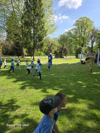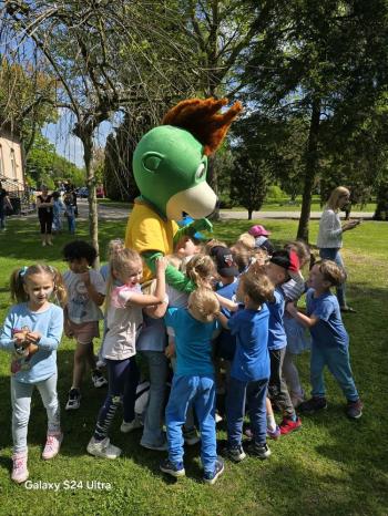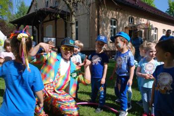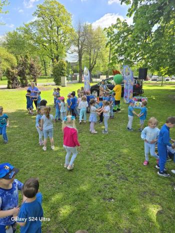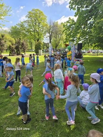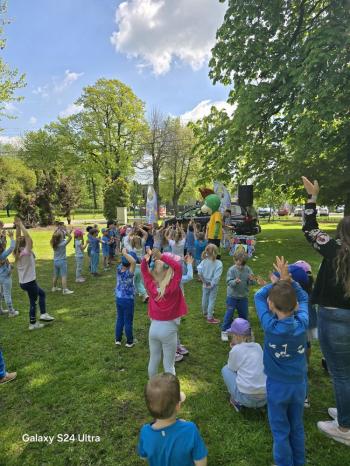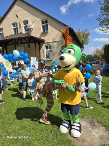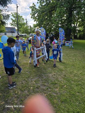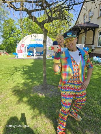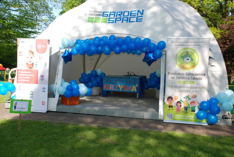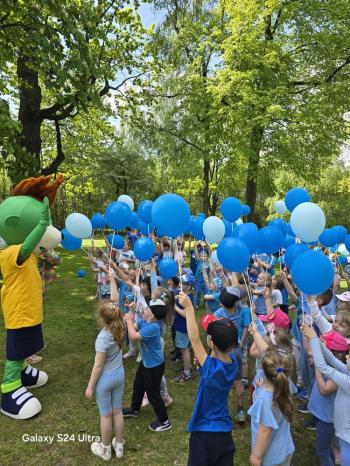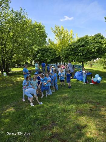 i akceptacji inności. Przygotowano również prezentację dla nauczycieli oraz rodziców. W przedszkolu pojawiły się gazetki dostępne dla rodziców oraz zawisło LOGO Niebieskich Igrzysk. Kolejnym etapem, była organizacja części sportowej. Tutaj 30 kwietnia 2025 roku zorganizowaliśmy piknik, na który zaprosiliśmy dyrekcję, nauczycieli oraz dzieci z zaprzyjaźnionej Szkoły Podstawowej im. Artura Grottgera w Porębie Wielkiej z terenu gminy Oświęcim oraz panią dyrektor Gminnego Ośrodka Kultury, Sportu i Rekreacji gminy Oświęcim. Wszyscy ubrani byliśmy na niebiesko. Oprócz konkurencji sportowych pojawił się kącik kreatywności, gdzie na folii dzieci malowały farbami niebieskie serduszka jako symbol integracji z dziećmi ze spektrum Autyzmu, foto budka oraz kącik ze smakołykami, którymi były treflikowe babeczki z niebieską polewą. Bardzo ważnym punktem imprezy były zabawy z Panem Humorkiem, który włączył się w organizację przedsięwzięcia. W czasie imprezy towarzyszył nam nasz przyjaciel TREFLIK. Na koniec wszyscy wspólnie odśpiewali HYMN NIEBIESKICH IGRZYSK. Dzieciaki otrzymały medale oraz dyplomy, a nasi goście drobne prezenciki. To był wspaniały dzień. Uśmiech nie znikał z buziek naszych dzieciaków.