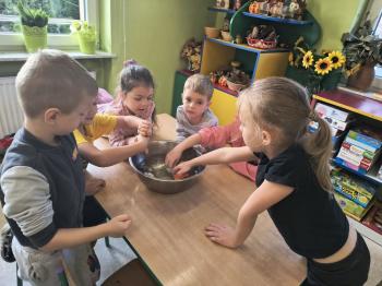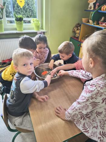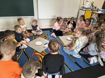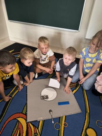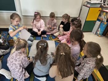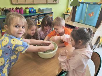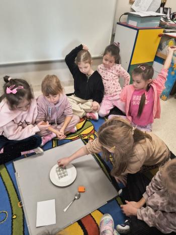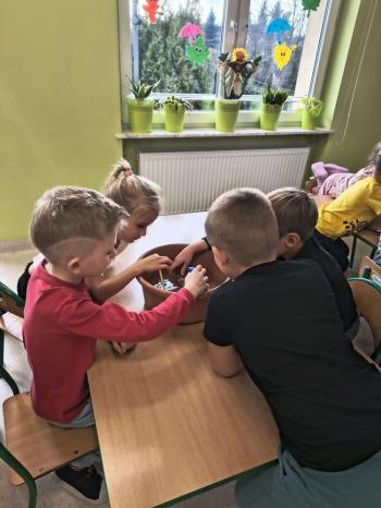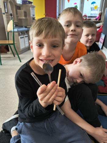 Podczas kolejnych zajęć w ramach realizacji projektu ,,Mali Wielcy Odkrywcy” grupa ,,Pszczółek” brała udział w doświadczeniach porównawczych, m.in. sprawdzała, które materiały przepuszczają wodę, a które ją zatrzymują, przeprowadziła ,,Test wytrzymałości materiałów” na działanie siły, test reakcji na różne substancje m.in. woda, olej oraz test przewodzenia energii cieplnej w teście ,,Ciepłe czy zimne”. W czasie zajęć pojawiało się wiele spontanicznych pytań i hipotez, które wspólnie omawiano. Zajęcia sprzyjały rozwijaniu umiejętności pracy w małych zespołach oraz wspólnego wyciągania wniosków.