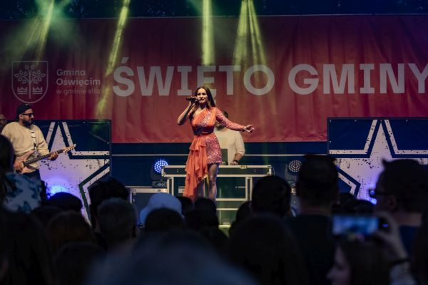 z przygotowanych tego dnia stoisk i atrakcji. Gdy wybiła godzina szesnasta, na scenie pojawiła się Dyrektor Ośrodka Kultury, Sportu i Rekreacji Weronika Sporysz, której przypadła rola konferansjera tegorocznego Święta Gminy Oświęcim. Po przywitaniu zebranych gości, zaprosiła na scenę laureatów XXVII Przeglądu Piosenki Dziecięcej „Nutka 2025”, czyli gminnego odpowiednika Eurowizji Junior, podczas którego mają okazję zaprezentować się młode talenty wokalne z naszej gminy i nie tylko. Laureaci swoje nagrody odebrali z rąk wójta gminy Oświęcim Mirosława Smolarka oraz przewodniczącego rady Gminy Oświęcim Adama Nowotarskiego. Po nagrodzeniu zwycięzców, Święto Gminy Oświęcim oficjalnie rozpoczął wójt gminy Oświęcim Mirosław Smolarek, któremu tego dnia towarzyszyła małżonka Beata. Włodarz naszej gminy w krótkich słowach życzył zebranym dobrej zabawy.